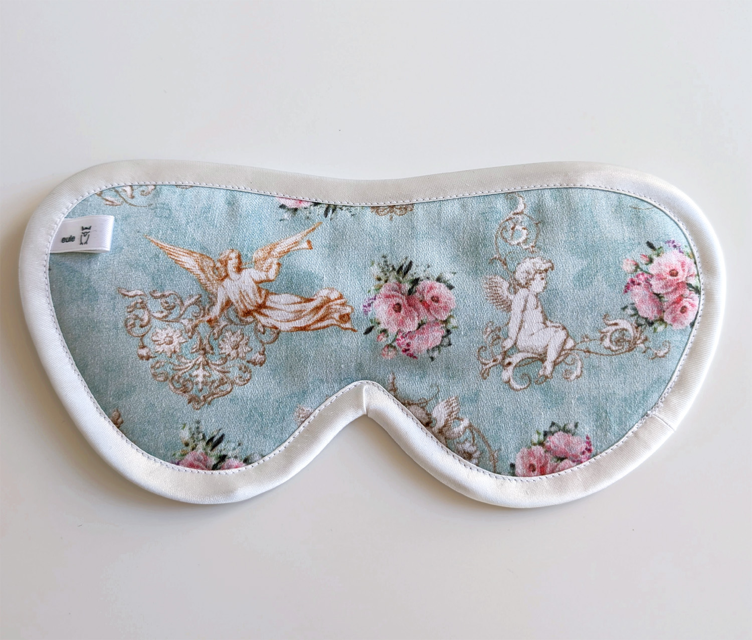 Vorderseite Baumwollstoff mit Rosen und Engeln