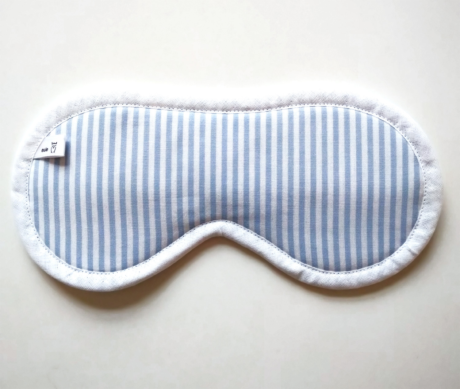 • schlafbrille aus weicher baumwolle mit hellblauen streifen